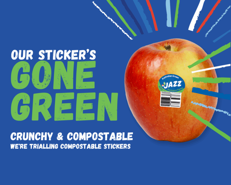 Traditionally, apple stickers are made from single-use plastic, posing challenges for composting and recycling. In collaboration with sticker supplier J-Tech, Montague Farms is trialling the Sinclair T55 sticker, certified by the Australasian Bioplastics Association and compliant with global composting standards. This trial, launching August 2025 and running for three months, follows a successful test on plums and supports Australia’s broader packaging reforms led by the Australian Packaging Covenant Organisation (APCO) and Montague Farms’ commitment to a more sustainable future. Taking place at Montague Farms’ high-capacity facility in Narre Warren North, the trial demonstrates a commitment to reducing environmental impact while maintaining quality and traceability. Just look for the green-outlined sticker on your next JAZZ™ apple!