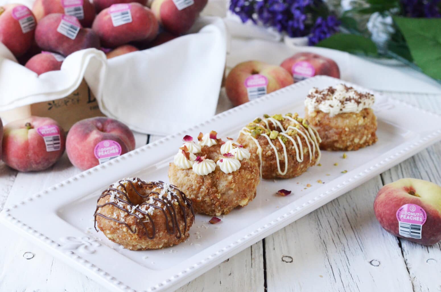 Cool baked peaches on cooling rack and chill for 30 mins before decorate with toppings.
